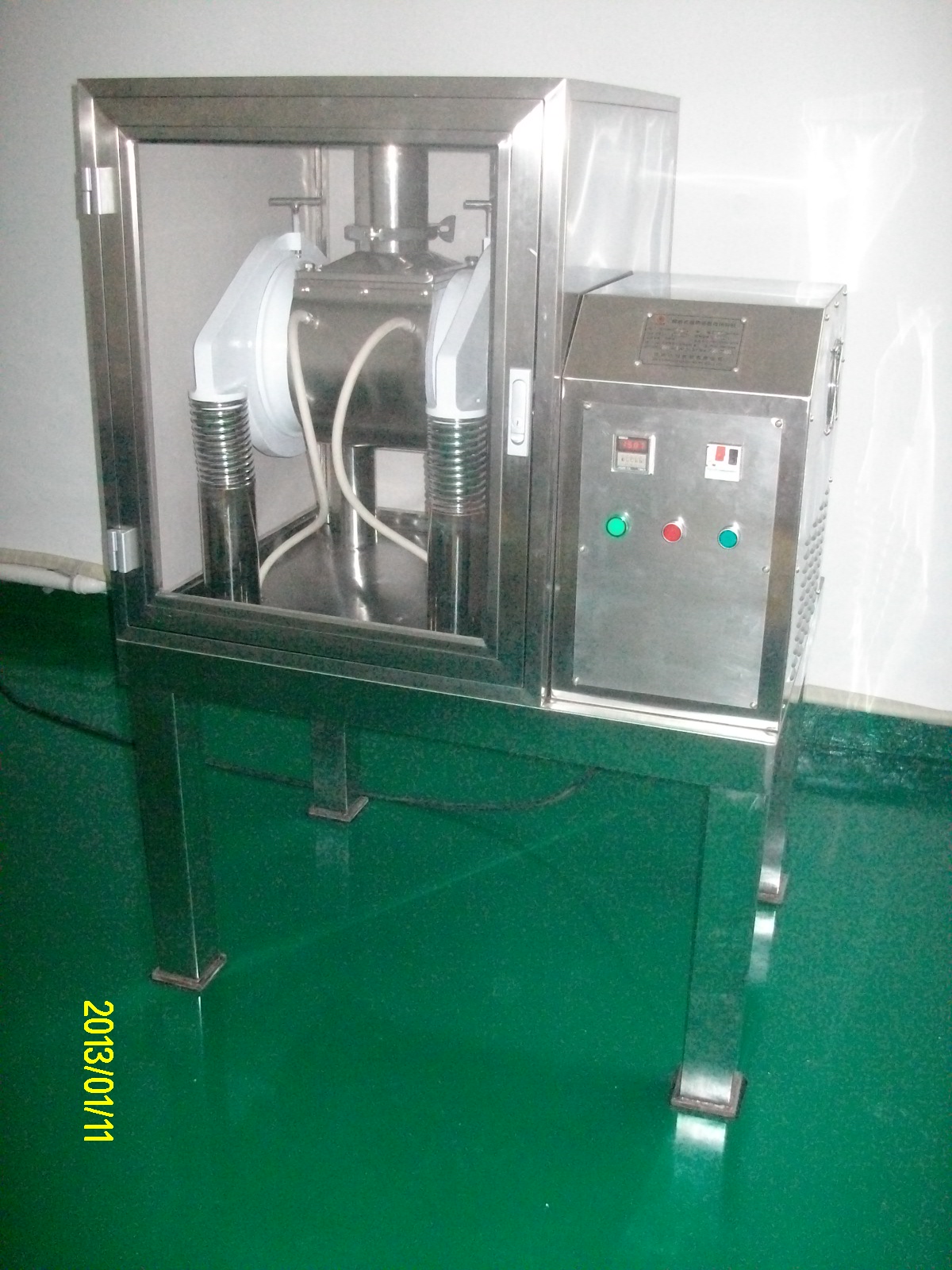 經(jīng)濟普及型超微粉碎機局部不銹鋼外觀,可放于普通車間或前處理車間 自來水循環(huán)冷卻,常溫